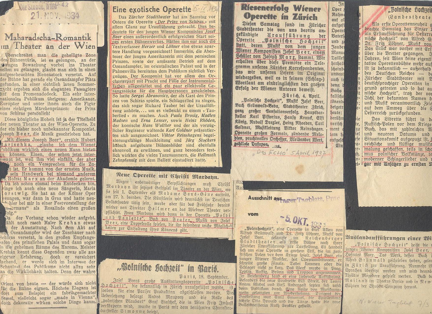 Newspaper clippings on