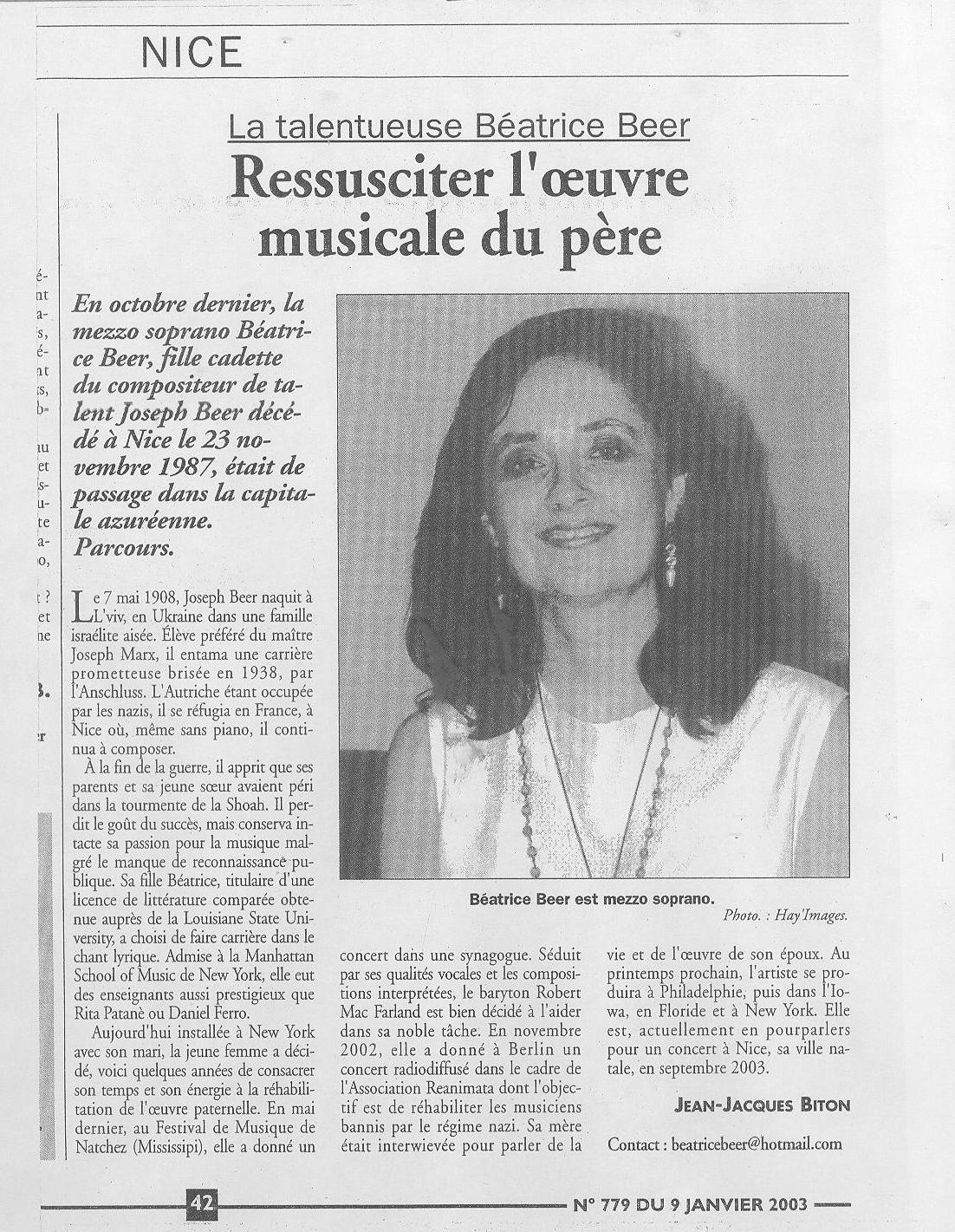 daughter's tribute to a gifted father... Soprano Béatrice Beer's voice